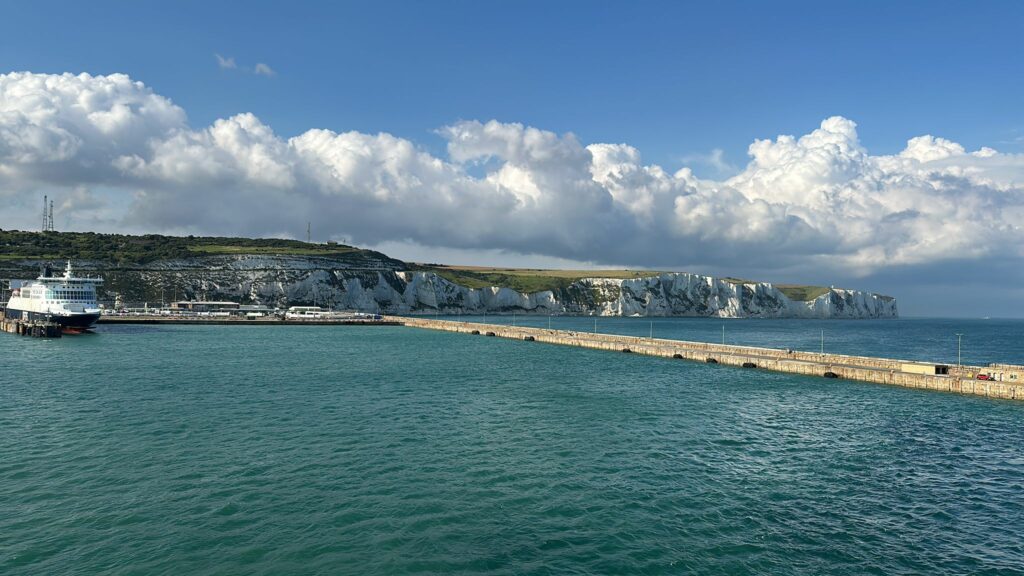 A mano a mano che ci si avvicina alla costa le scogliere di Dover iniziano ad assumere i loro contorni come se un pittore un pò alla volta le stesse disegnando. Sono bianche, è vero. “AI Overview” – l’intelligenza artificiale di Google – recita così: “Le Scogliere di Dover sono bianche perché sono costituite principalmente da gesso (chalk), una roccia sedimentaria di colore chiaro formata milioni di anni fa da depositi di microscopici resti calcarei di antichi organismi marini, come i coccolitofori. Il processo di consolidamento e formazione di questi sedimenti nel corso di milioni di anni ha dato origine alla roccia calcarea bianca friabile che vediamo oggi sulle scogliere.“